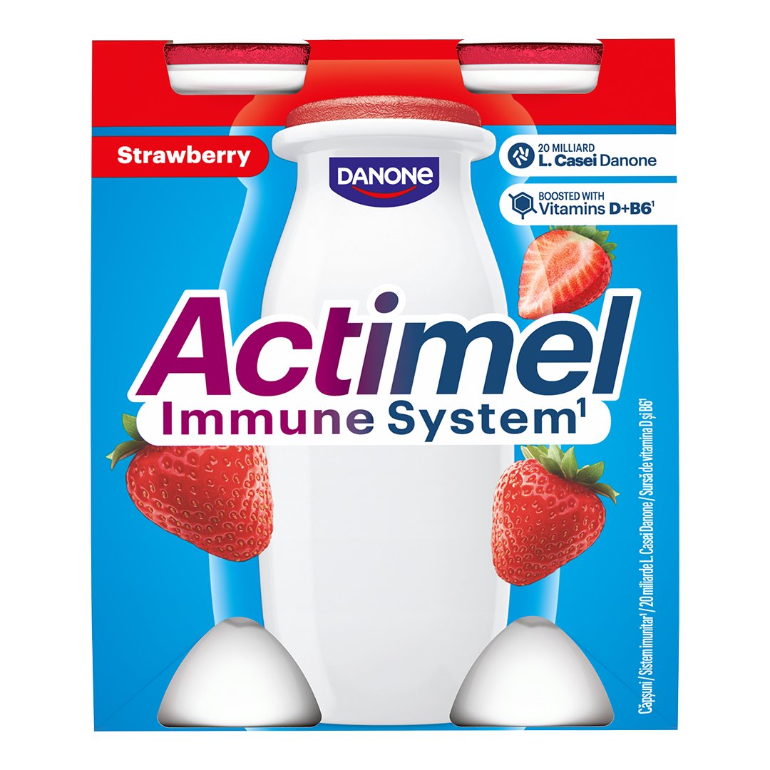 Αποβουτυρωμένο γάλα αγελάδος 51,8%, ανασυσταθέν αποβουτυρωμένο γάλα αγελάδος 28,5% (νερό, αποβουτυρωμένο συμπυκνωμένο γάλα, αποβουτυρωμένο γάλα σε σκόνη), ζάχαρη, κρέμα γάλακτος, συμπυκνωμένος πουρές φράουλας 2,4%, δεξτρόζη, φυσικές αρωματικές ύλες, τροποποιημένο άμυλο, ανόργανα άλατα γάλακτος, πυκνωτικά μέσα (πηκτίνες), ρυθμιστές οξύτητας (κιτρικό οξύ, κιτρικά άλατα νατρίου), καλλιέργειες γιαουρτιού, καλλιέργειες L. casei Danone, βιταμίνες (B6, D).